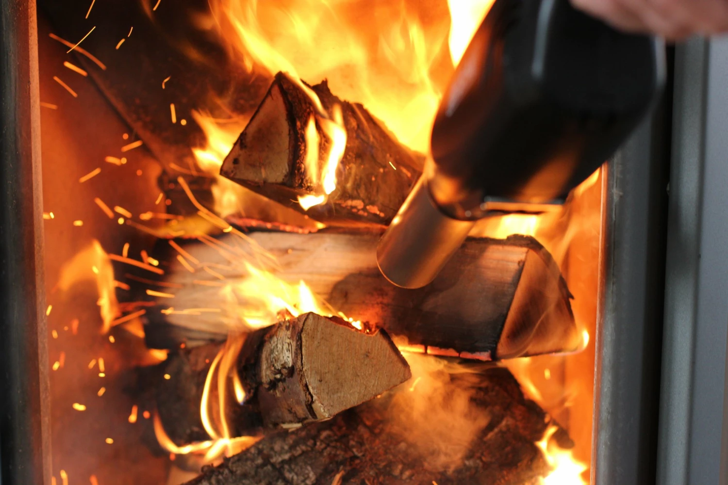 Grillanzünders und eines Flambierbrenners. Damit können Sie die Holzkohle anzünden und innerhalb weniger Minuten richtig zum Glühen bringen. Dieser Grillanzünder ist schnell, bequem und sicher.