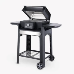 Der Holzkohlegrill beeindruckt ebenfalls mit einem hochwertigen gusseisernen Grillrost, einem höhenverstellbaren Holzkohlebehälter (mit 6 Stufen), einer einstellbaren Sauerstoffzufuhr und einem praktischen Kamin für eine optimale Hitzeentwicklung.