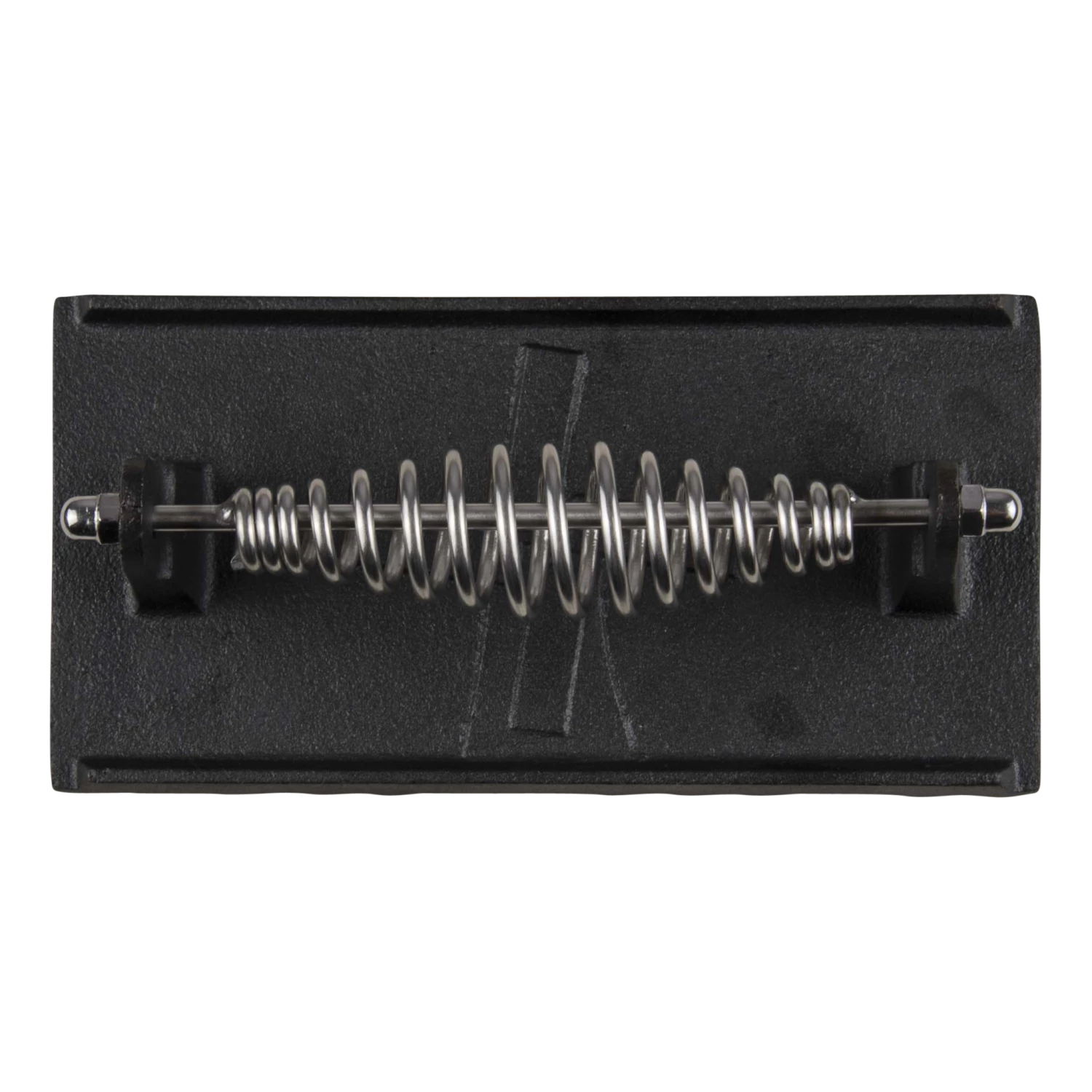 Speckpresse aus Gusseisen mit Kaltgriff aus Edelstahl. Auf der Unterseite befindet sich ein Rippenmuster, um die bekannten Grillstreifen zu erhalten.